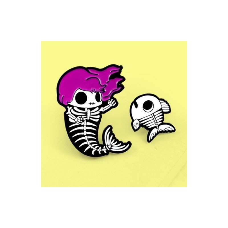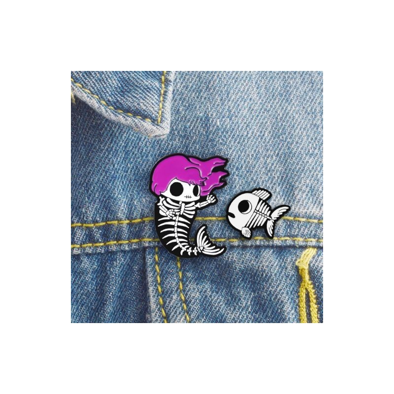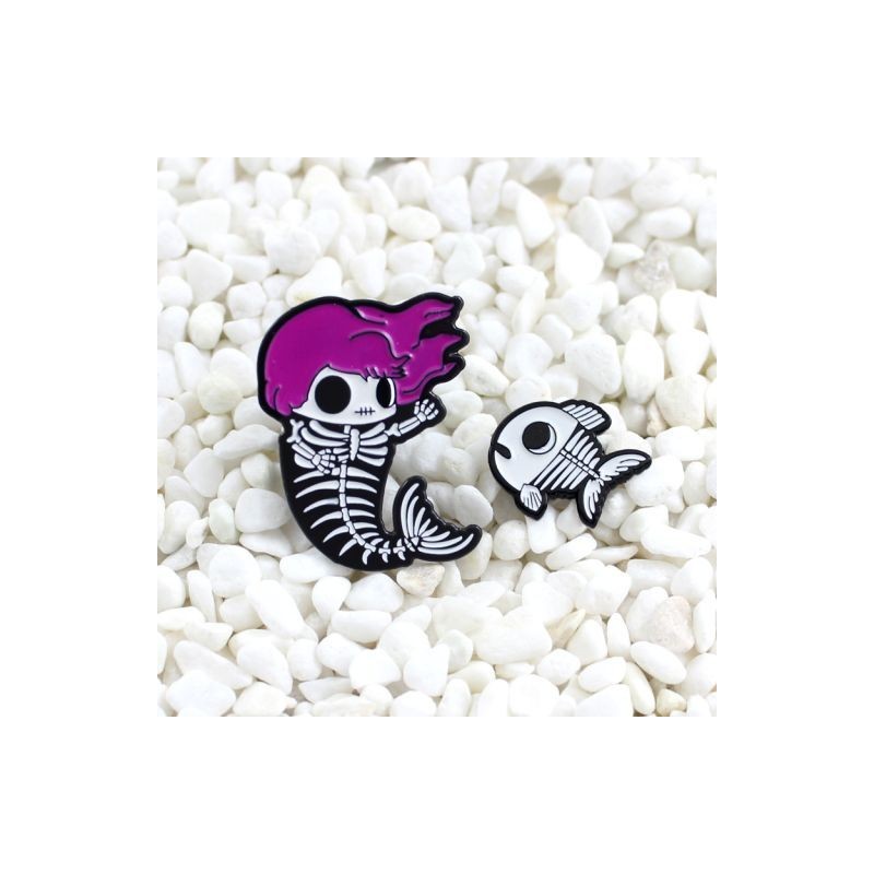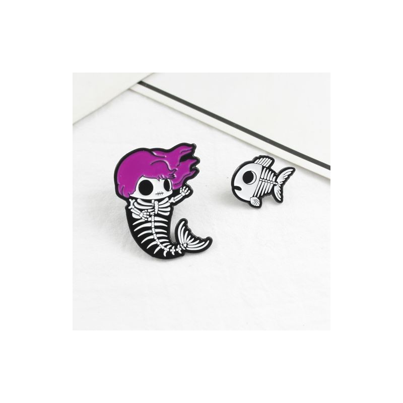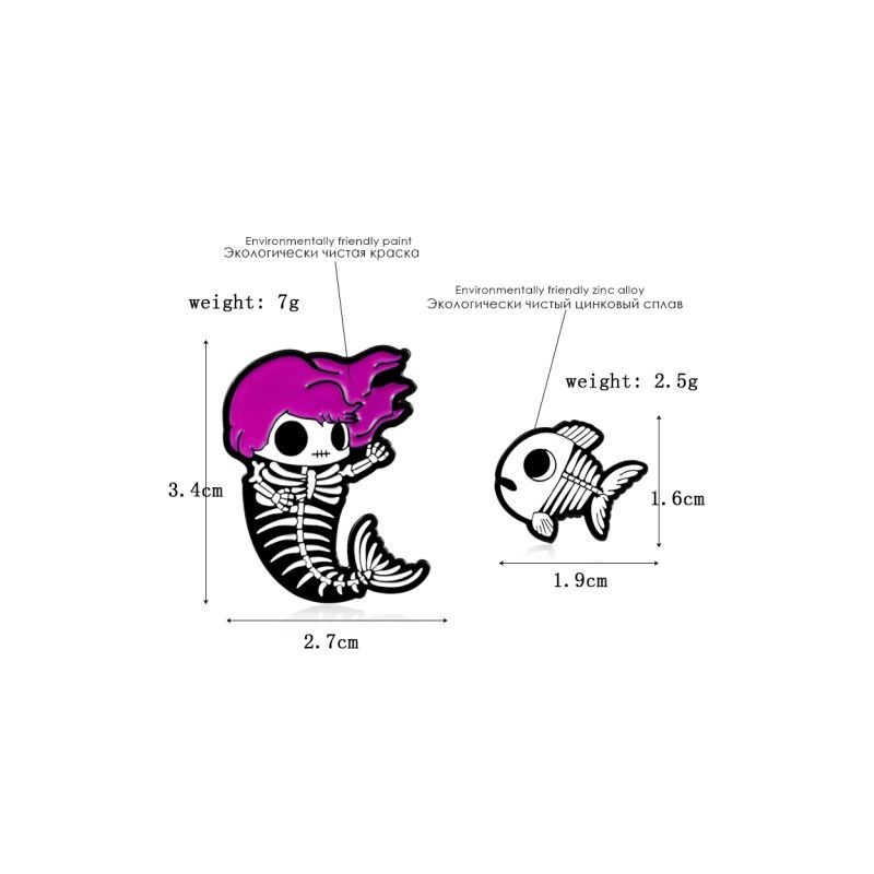 Cute Mermaid Skeleton Fishbone Brooch Zombie Pirate Mermaid Fishbone Enamel Pins Badge Fish Bones Badge Fantasy Gifts Brosche