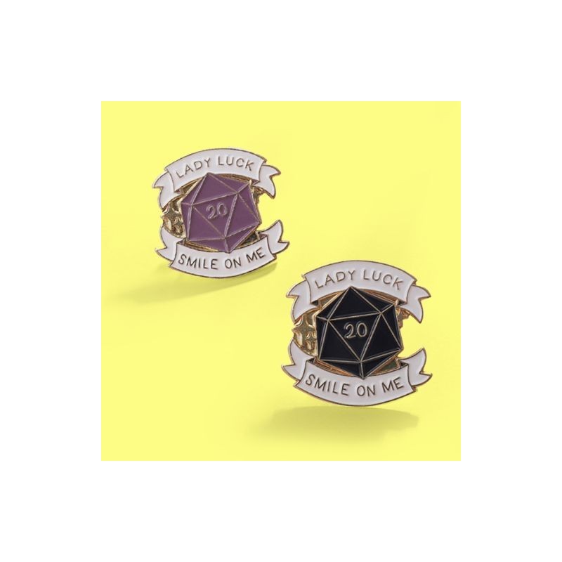 D20 sided dice Dungeons and Dragons Enamel Pin LADY LUCK,SMILE ON ME Brooches Lapel Badge for women Men D20 DnD Game Jewellery