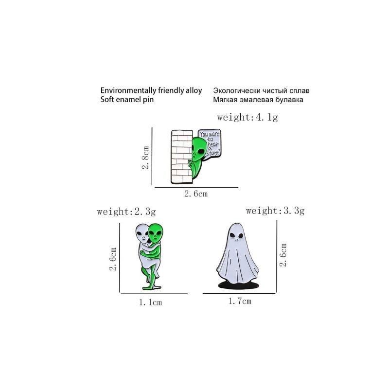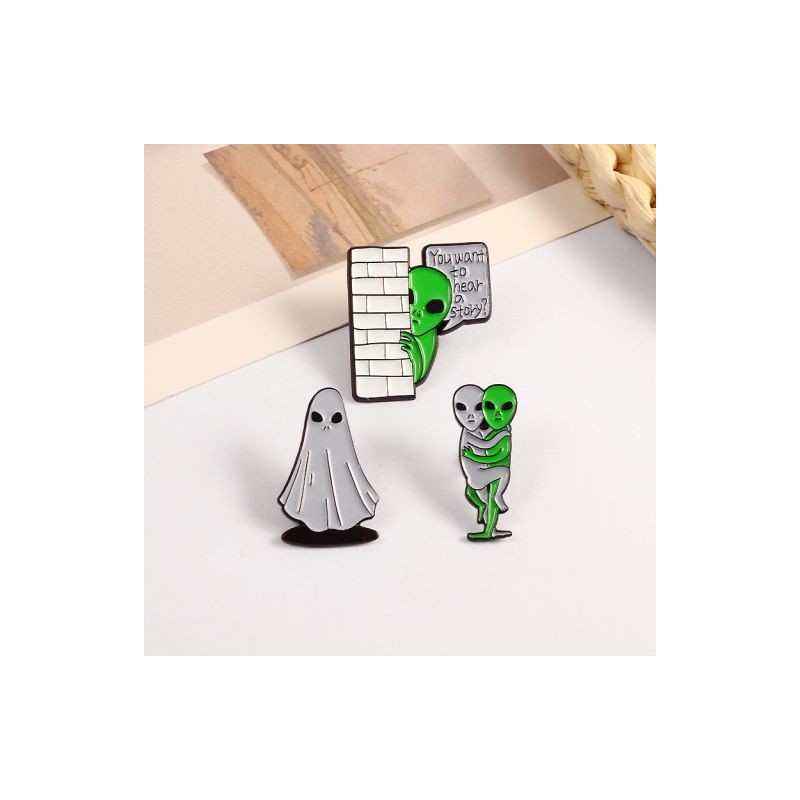 Funny Alien And Ghost Enamel Pin Alien ET 'You want to hear a story?' Brooches Lapel For Lovers Best Friend Badge Jewellery Gift
