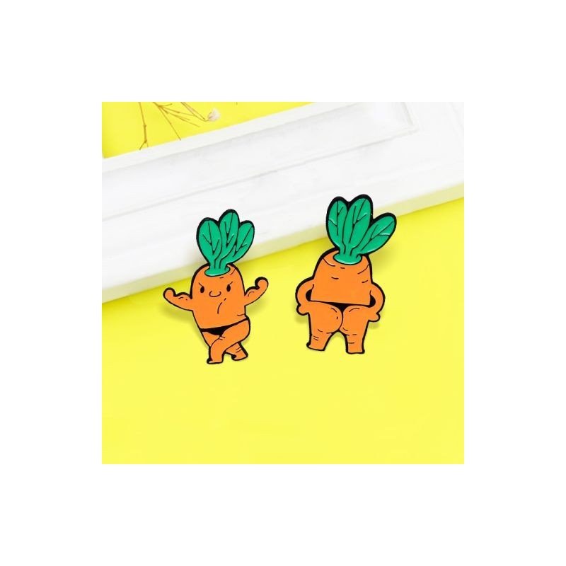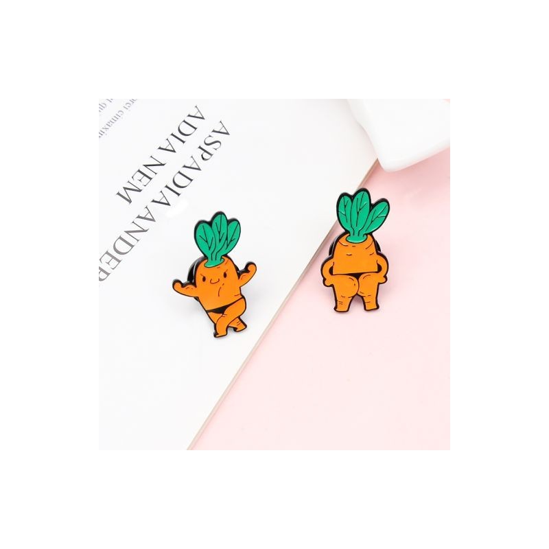 Aranyos narancssárga sárgarépa Mester brossok Testépítés Sárgarépa Férfi Bikini Retek Zománc Pins Jelvény Bross Női Nagyker Ékszer