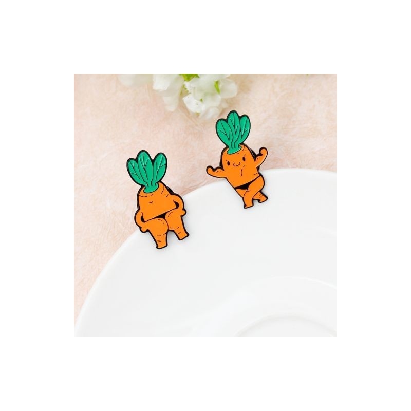 Cute Orange Carrot Master Brooches Bodybuilding Carrot Man Bikini Radish Enamel Pins Badge Brooch For Women Wholesale Jewellery