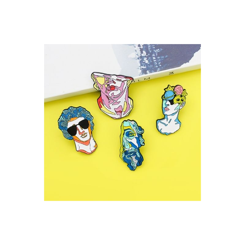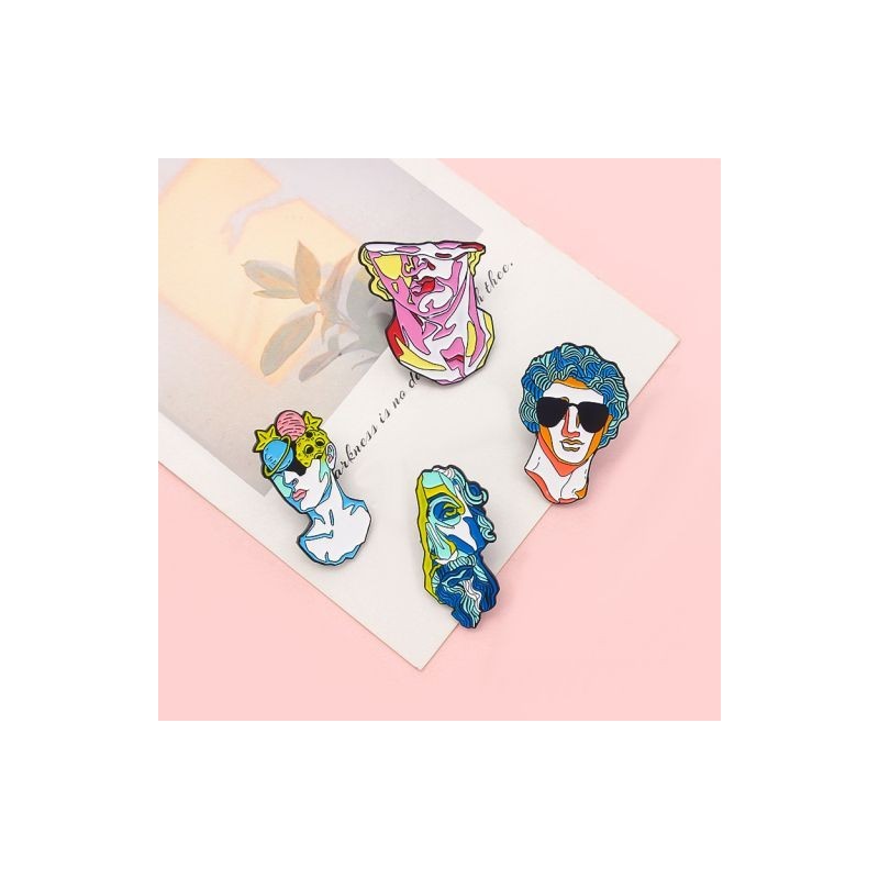 Abstract art Statue Enamel Pins Star Universe Brain Statue Blue Flower Hair Broken Statue Brooches Lapel For Women Badges Gift