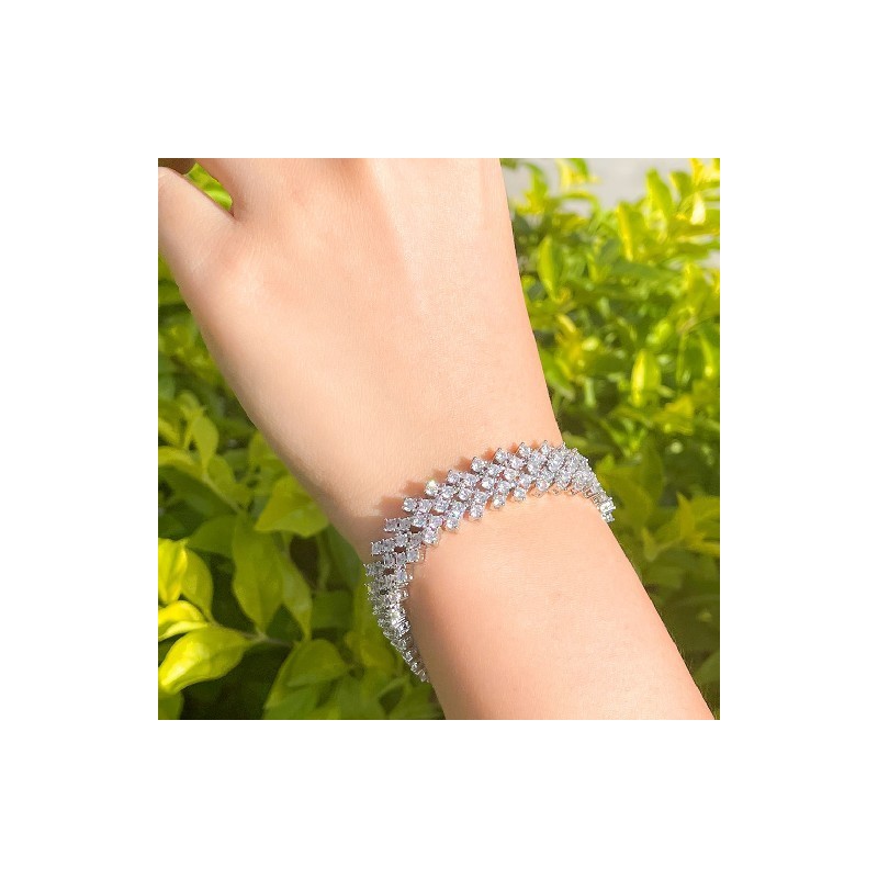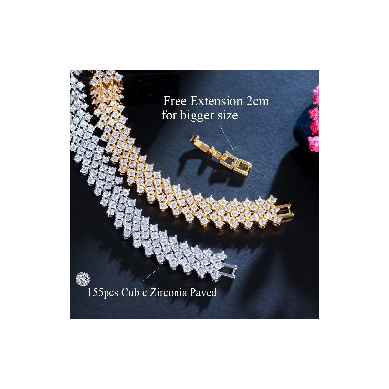 CWWZircons Bling Cubic Zirconia Luxury Round Tennis Bracelet for Women White Gold Plated Wedding Bridal Party Jewellery Gift CB282