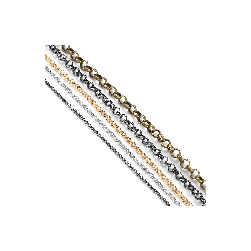 5 m/tétel 2-5,8 mm-es tömeges Rolo lánc hosszú ékszerlánchosszabbító nyaklánc láncok barkácsoláshoz, kézzel készített ékszerekhez.