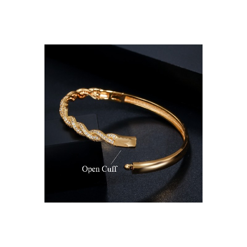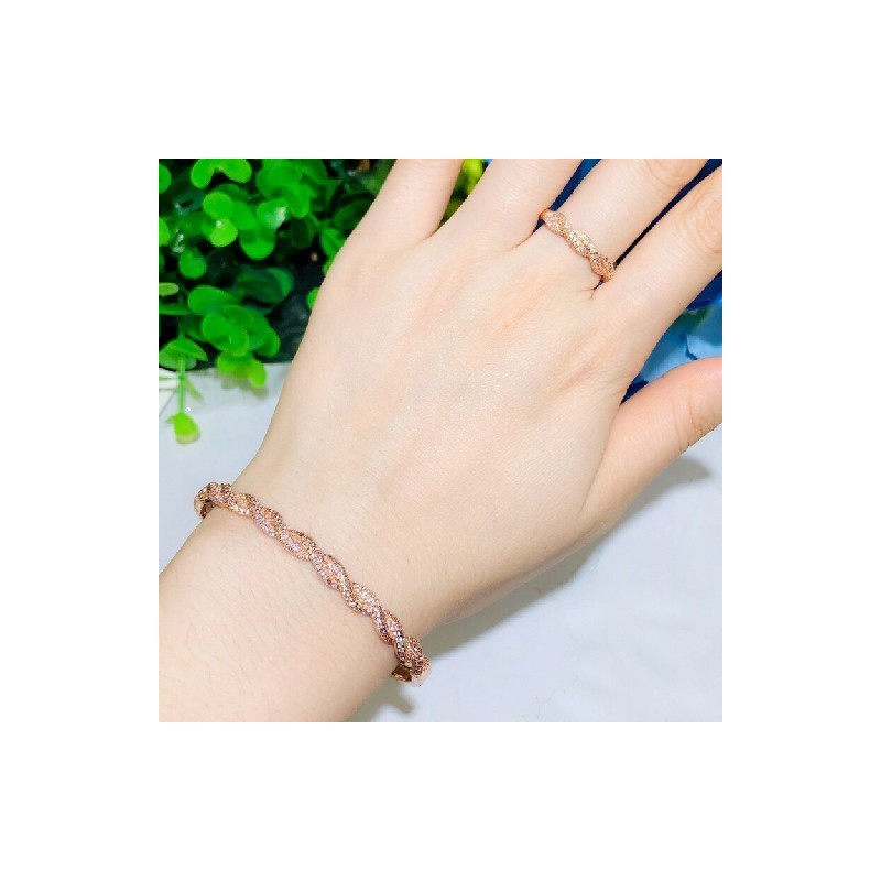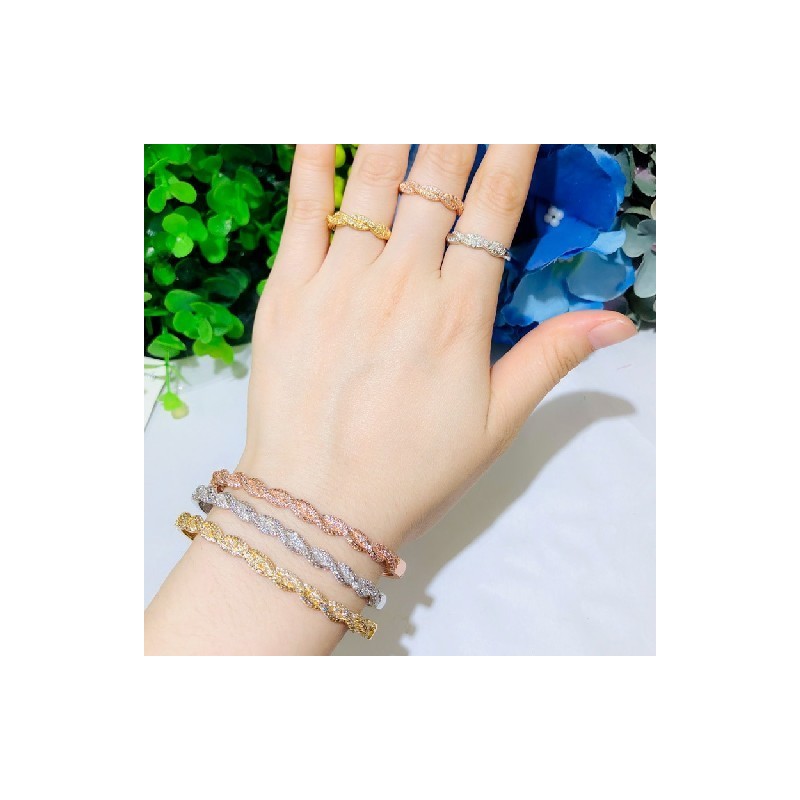 CWWZircons Twist Lines Cubic cirkónia Dubai Rose Gold színű nyitott mandzsetta menyasszonyi afrikai karkötő karkötő és gyűrű ékszer szett T458