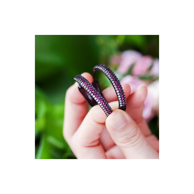 CWWZircons Designer Rainbow Red Purple Cubic Zirconia Big Round Black Gold Color Huggie Hoop Earrings for Women Gift Accessories CZ564