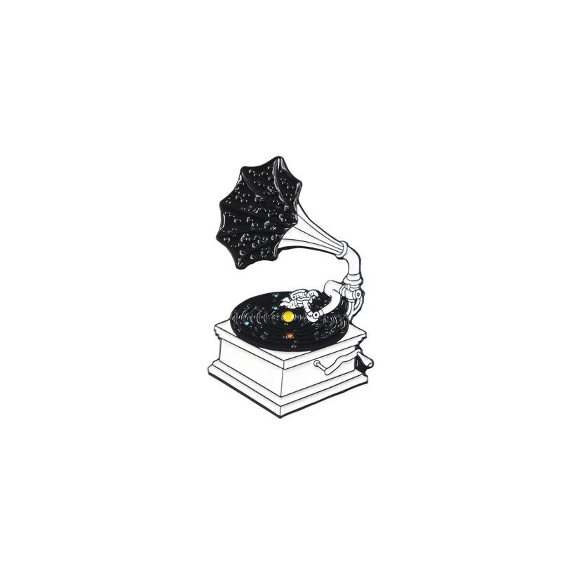 Csillagos Éjszaka Gyűjtemény Zománctűk Fonográf Macska Hold Doboz Jelvények Egyedi brossok Táska Ruhák Féktű Punk Fekete Ékszerek