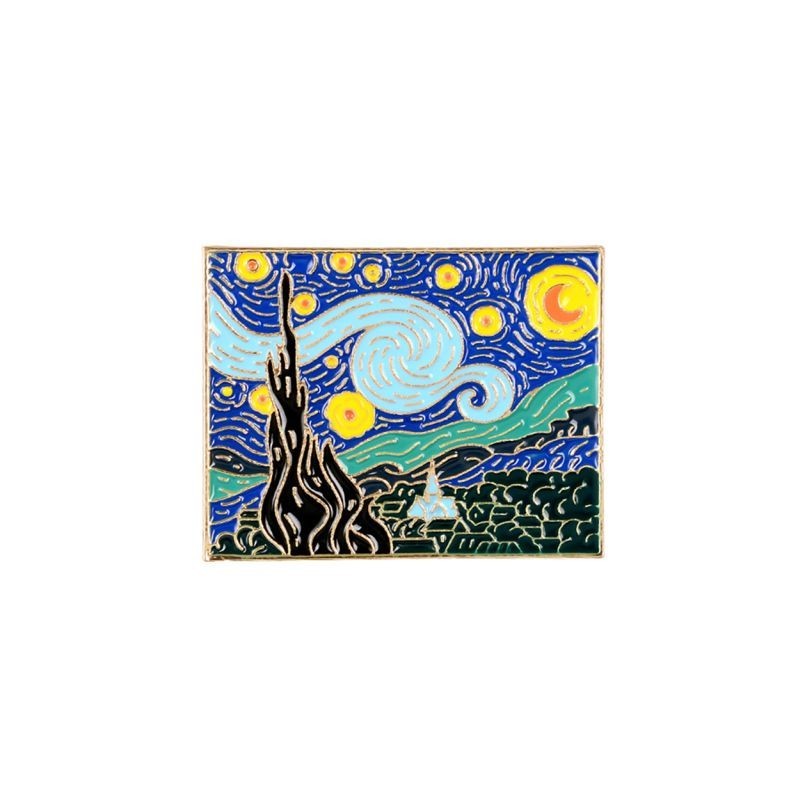 Van Gogh Oil Painting Brooch Van Gogh Brooch Galaxy Brooch Star Moon Sunflower Brooch Art Brooch Van Gogh Lapel Pin