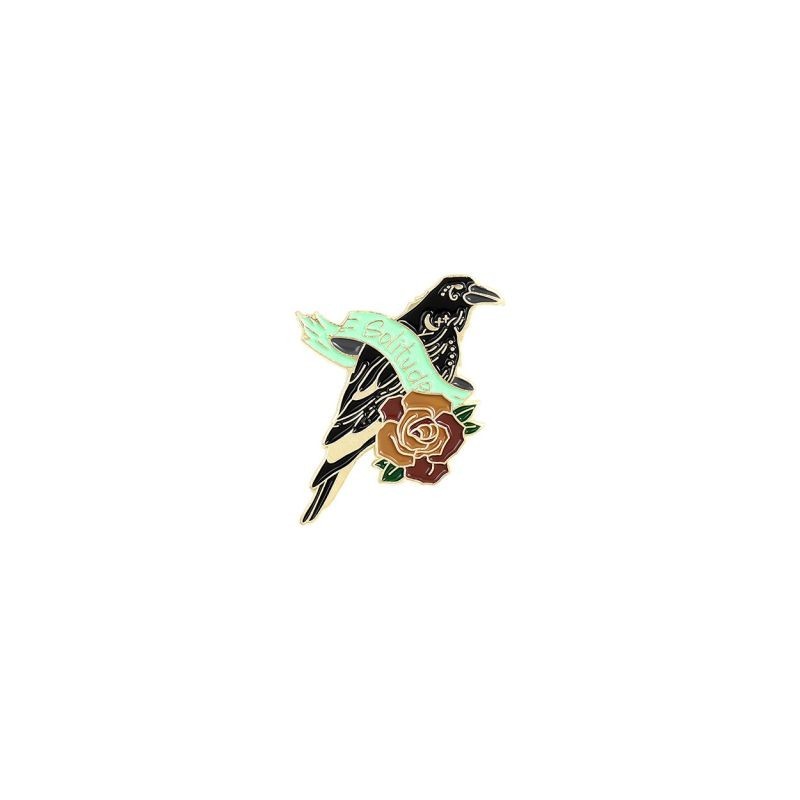 Varjúholló zománctű Egyedi madártoll Hold Virágok Brossok Táska hajtókátű Punk Kitűző Gótikus ékszer Ajándék barátoknak