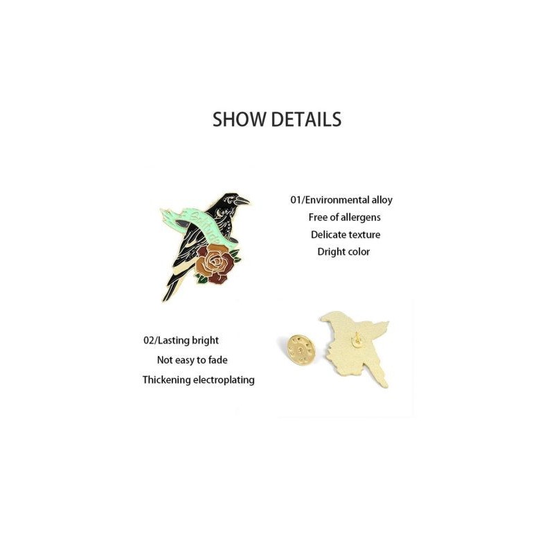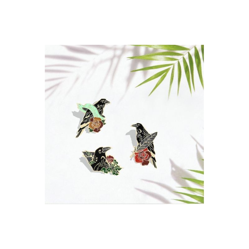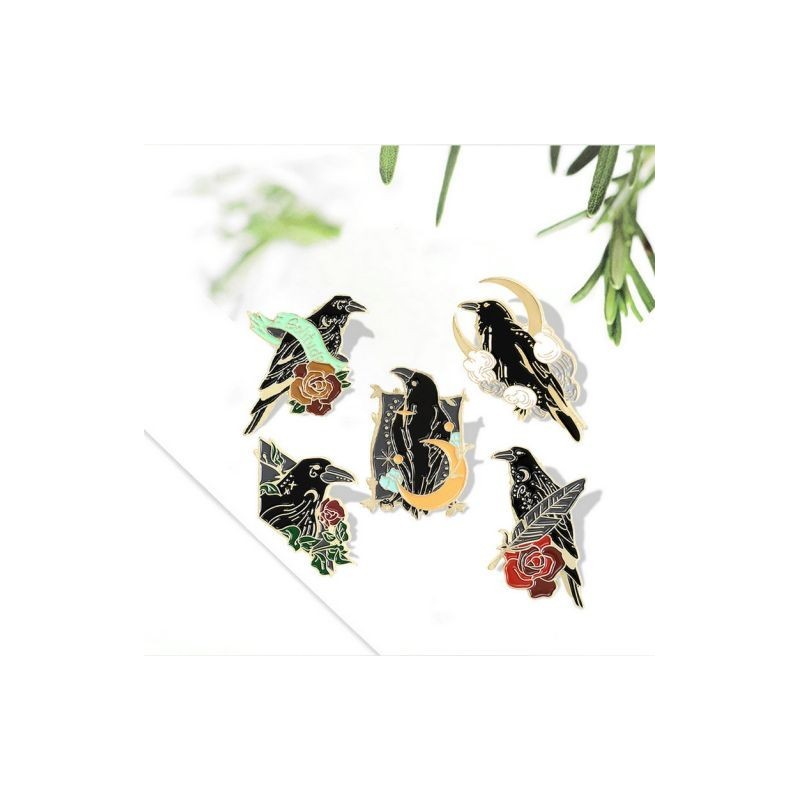 Crow Raven Enamel Pin Custom Bird Feather Moon Flowers Brooches Bag Lapel Pin Punk Badge Gothic Jewellery Gift for Friends