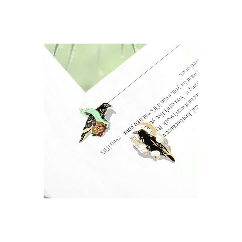 Crow Raven Enamel Pin Custom Bird Feather Moon Flowers Brooches Bag Lapel Pin Punk Badge Gothic Jewellery Gift for Friends