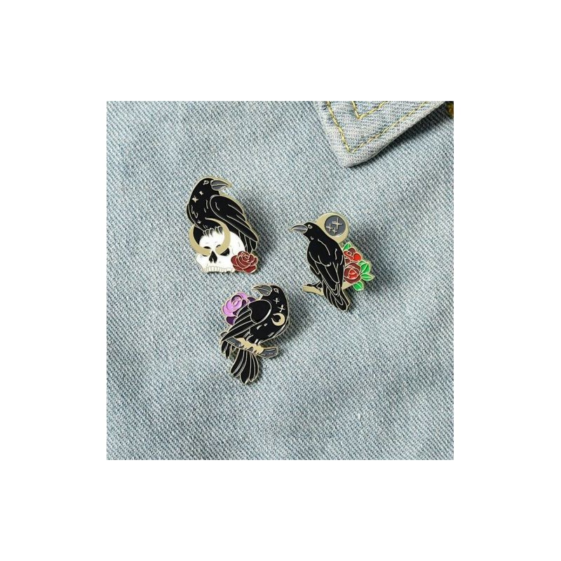 Gothic Crow Enamel Pins Custom Starry Raven Skull Punk Brooches Bag Clothes Lapel Pin Badge Dark Jewellery Gift for Friends