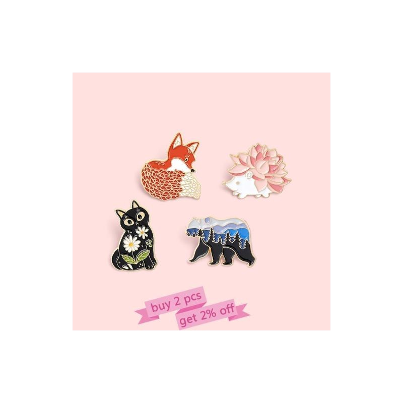 Erdőkert zománctű Egyedi róka macska sündisznó bross táska hajtóka rajzfilm állatjelvény ékszer Ajándék gyerekbarátoknak
