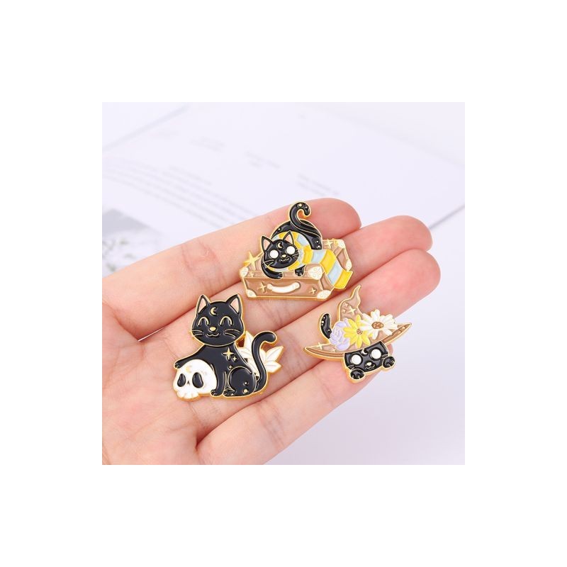 Cat Brooch Skull Cat Brooch Halloween Wizard Hat Couple Cat Sun Moon Cat Brooch Black White Cat Alloy Enamel Badge Lapel Pins