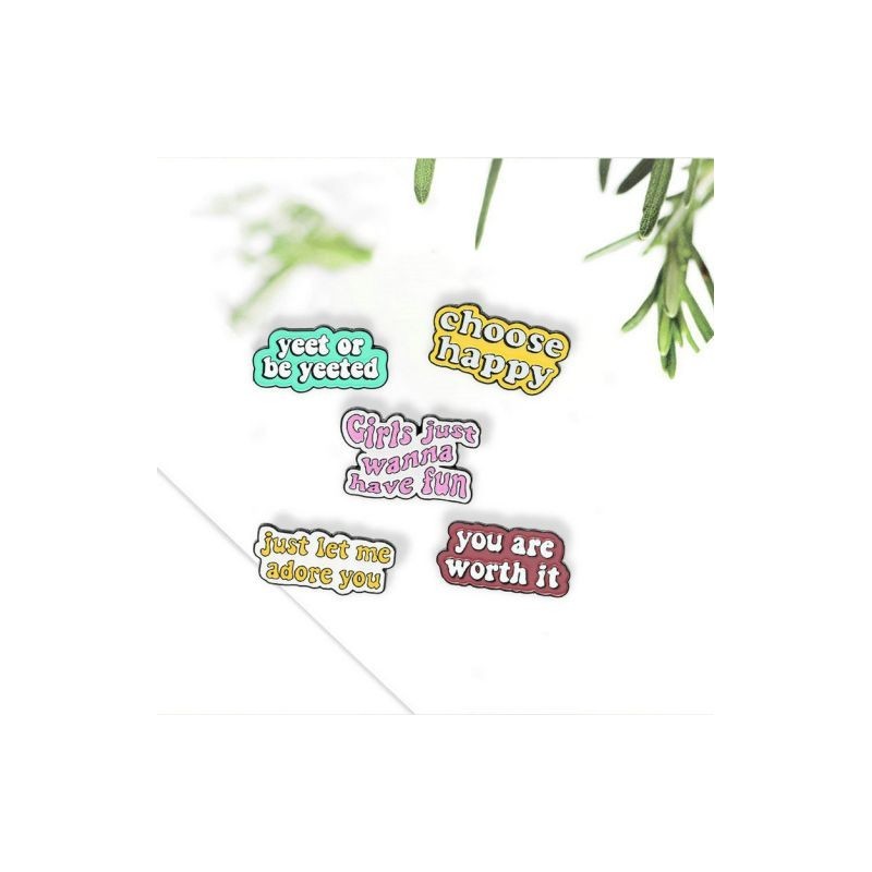 Fun Quotes Enamel Pins Custom Choose Happy You Are Worth It Brooches Dialog Badge Denim Shirt Lapel Pin Bag Jewellery Gift