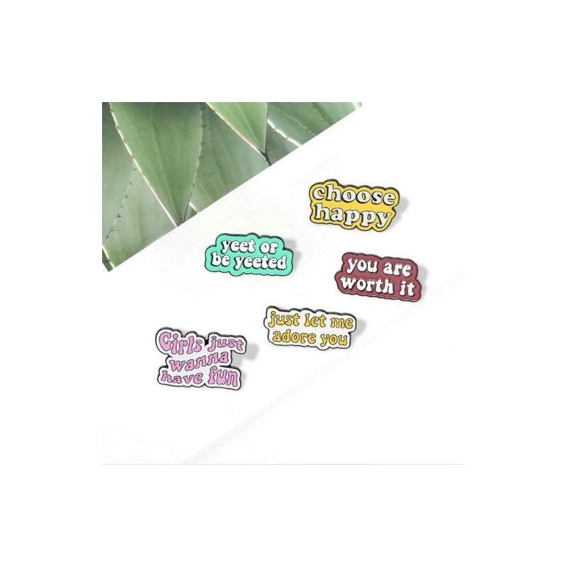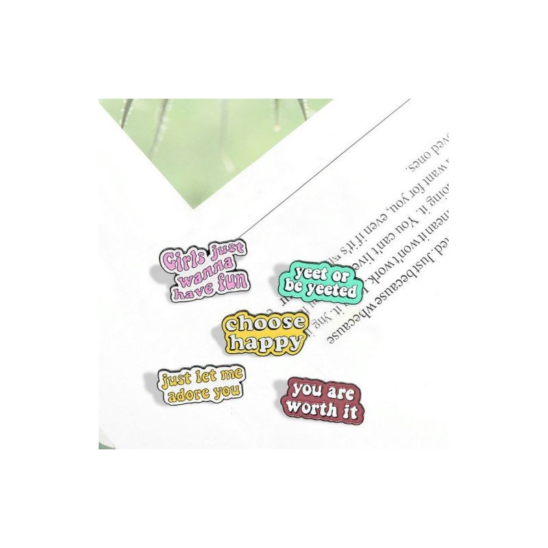 Fun Quotes Enamel Pins Custom Choose Happy You Are Worth It Brooches Dialog Badge Denim Shirt Lapel Pin Bag Jewellery Gift