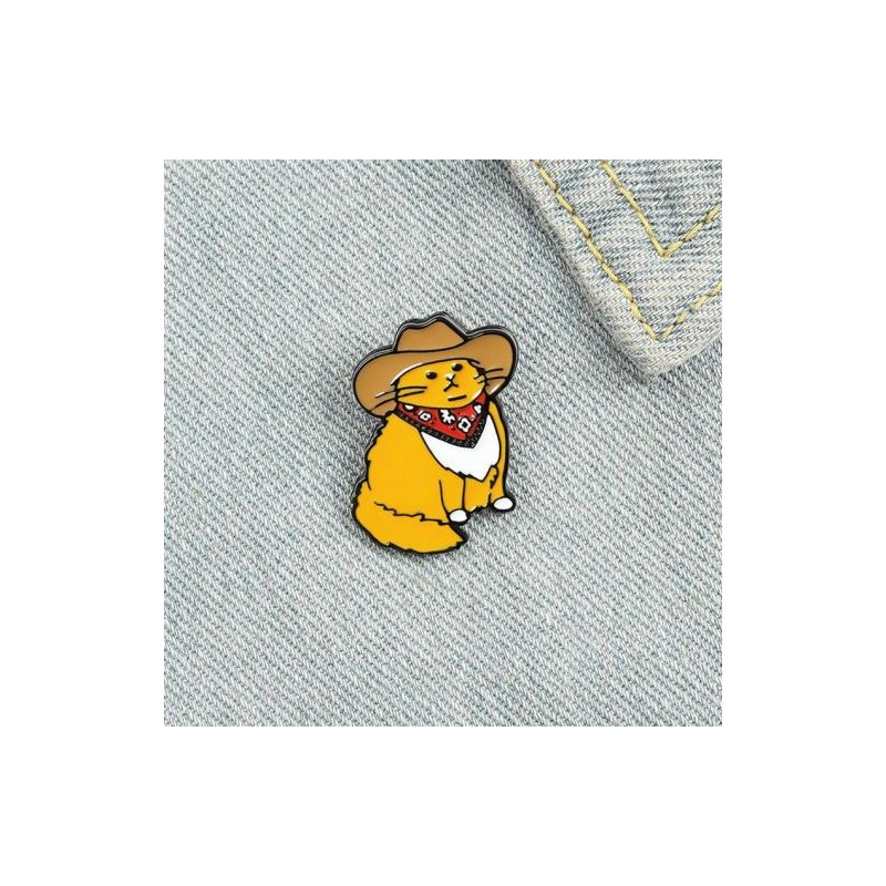 Cowboy Cats Enamel Pin Custom Funny Animal Hat Brooches Shirt Lapel Bag Cute Badge Cartoon Kitten Jewellery Gift for Friends