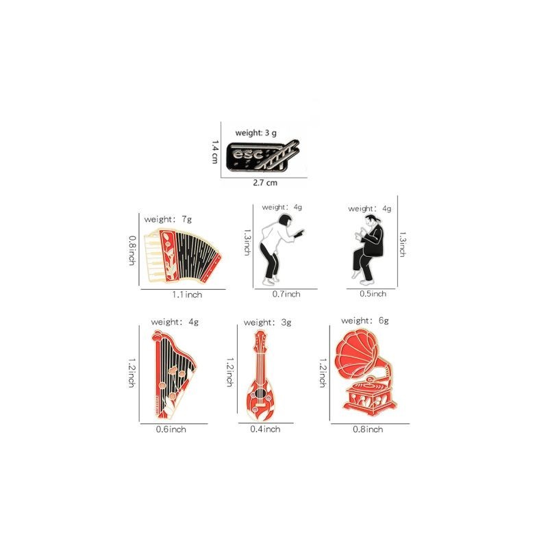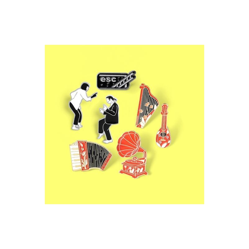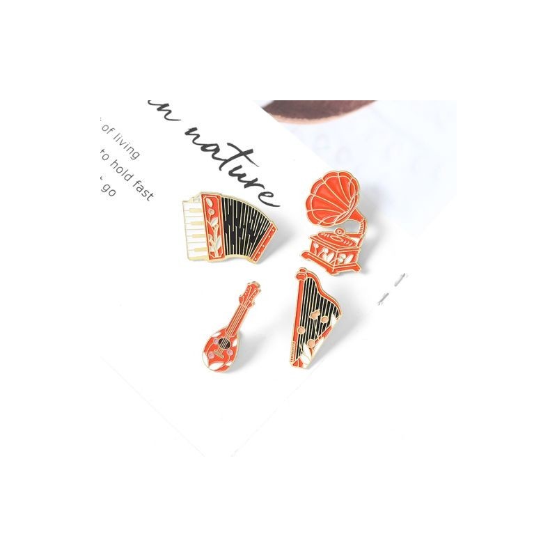 Black red style Brooches Pulp Fiction Vintage Instrument Enamel Pin Custom Phonograph Accordion Guitar Brooch Badge Jewellery Gift