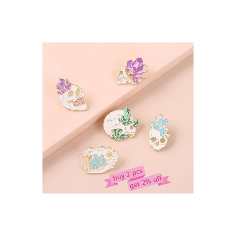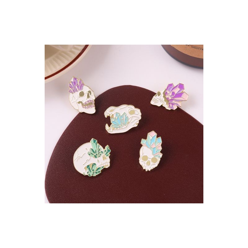 Crystal Skeleton Enamel Pin Custom Green Blue Purple Ore Skull Brooches Badges for Bag Clothes Punk Gothic Jewellery Gift Friends