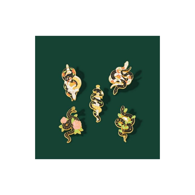 Fekete kígyók zománctűk Egyedi Virágok Szőlő Holdfázis Bross Cseppjelvények Gótikus Állat Punk Sötét Ékszer Ajándék barátoknak