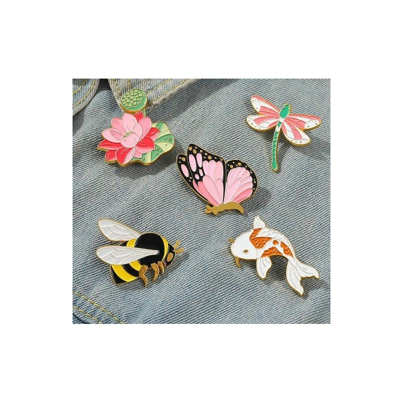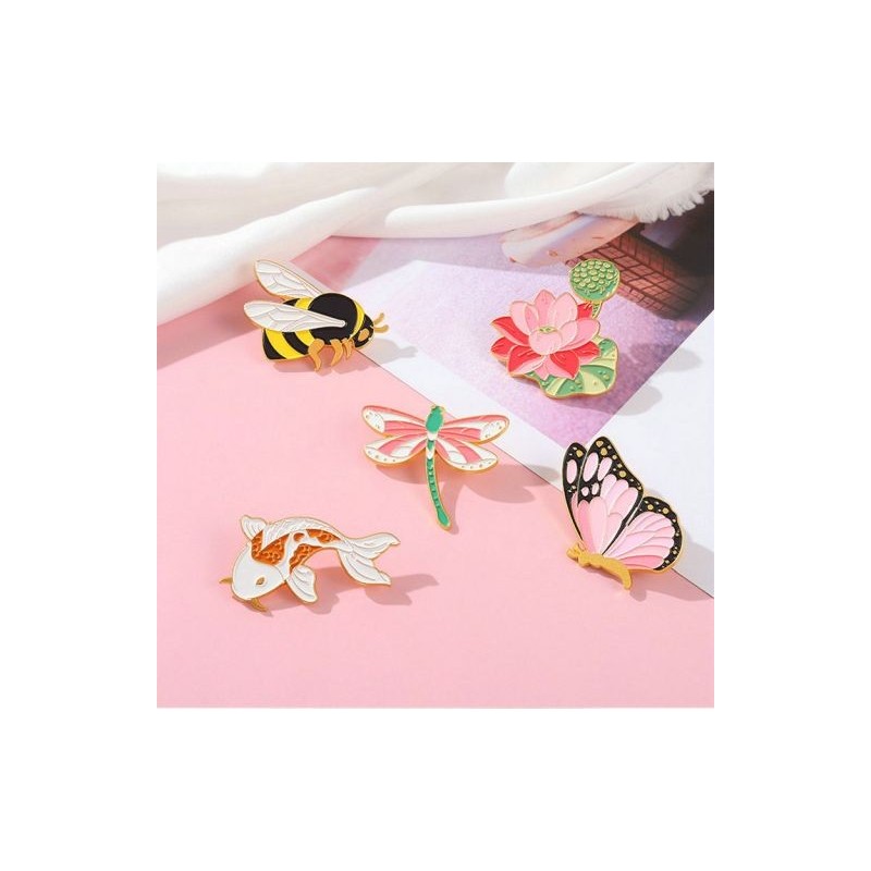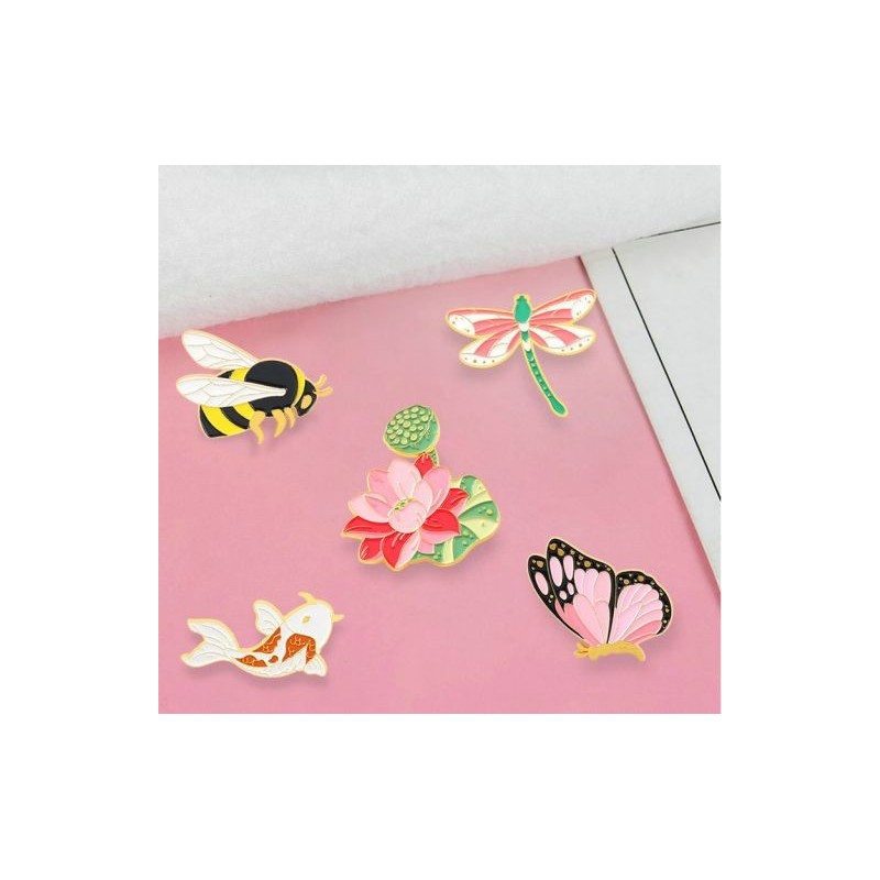 Kínai tintával festett zománctű Egyedi Lotus Dragonfly Koi Butterfly Bee brosstáska hajtóka jelvény Art ékszer Ajándék gyerek barátnak