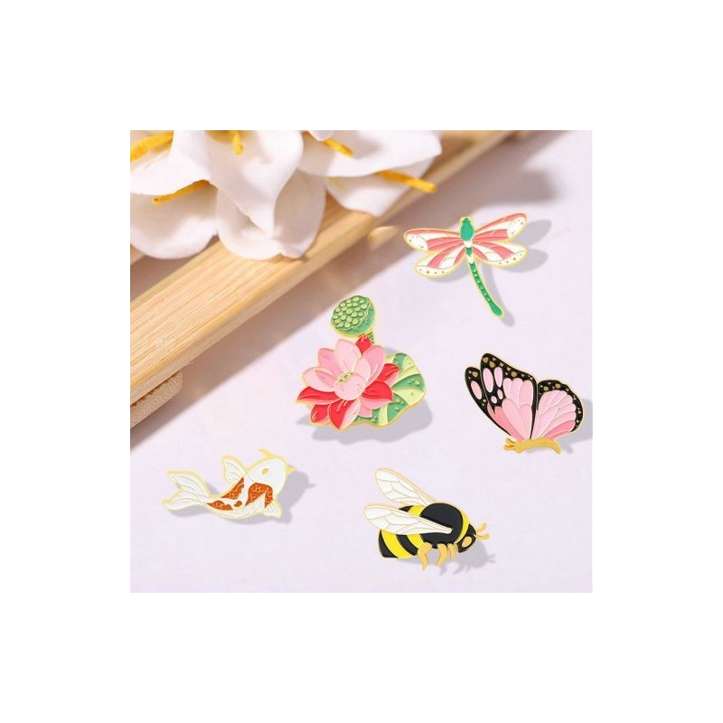 Chinese Ink Painting Enamel Pin Custom Lotus Dragonfly Koi Butterfly Bee Brooch Bag Lapel Badge Art Jewellery Gift for Kid Friend