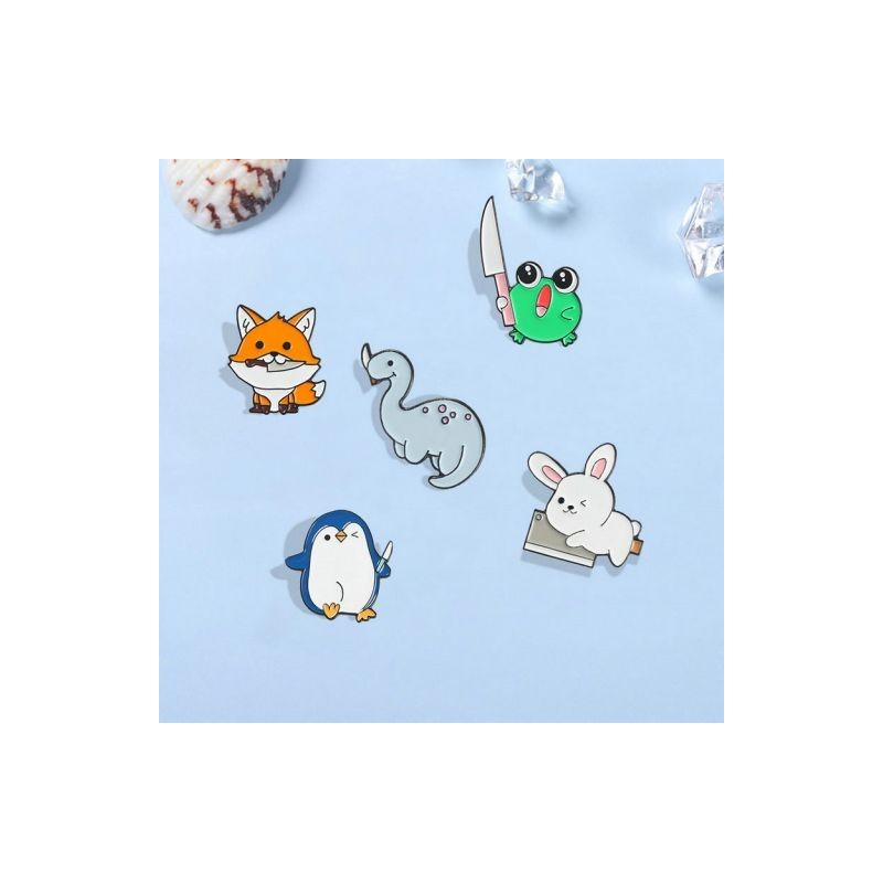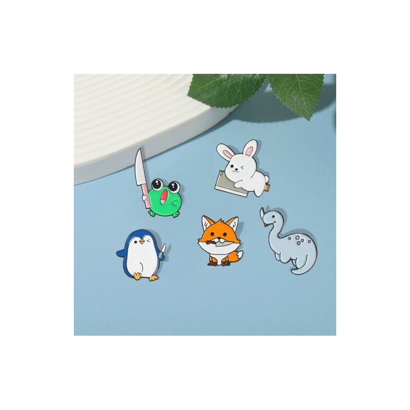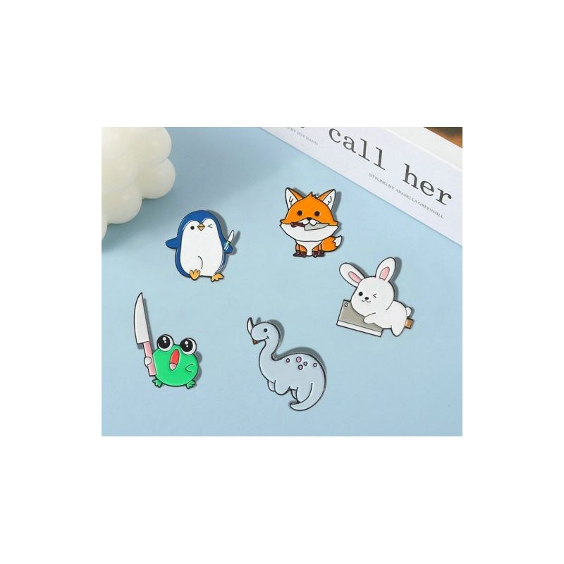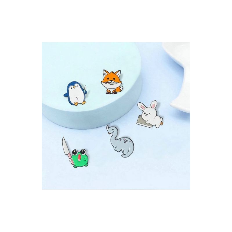 Animal Dagger Enamel Pin Custom Lovely Fox Penguin Tyrannosaurus Rex Killing Brooch Bag Lapel Pin Cartoon Badge Jewellery Gift