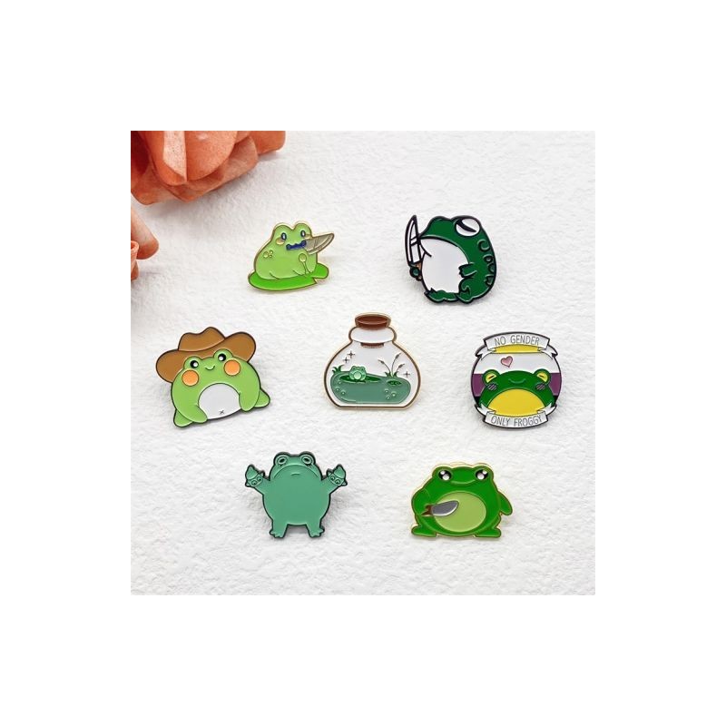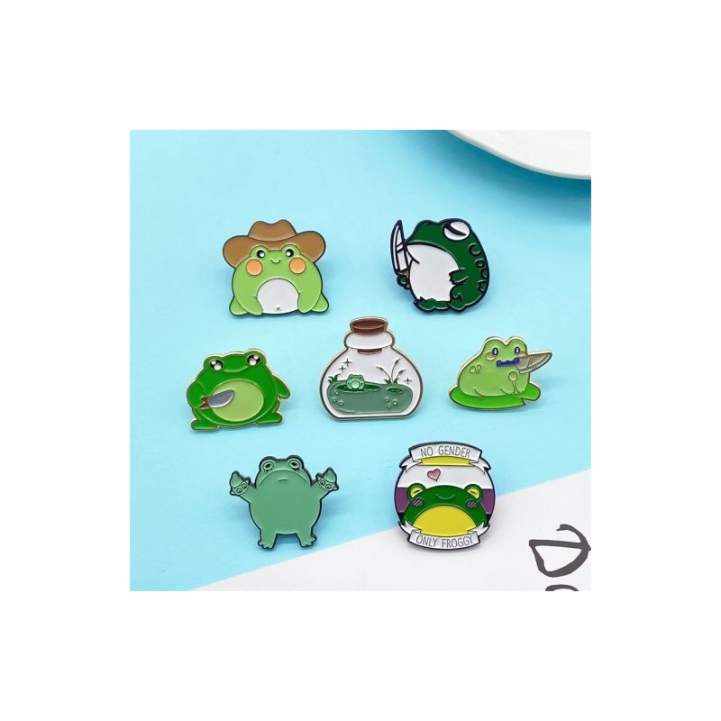 Funny Little Frog Collection Metal Enamel Brooch Cartoon Cute Cowboy Love Frog Small Animal Badge Lapel Pin Jewellery Accessories