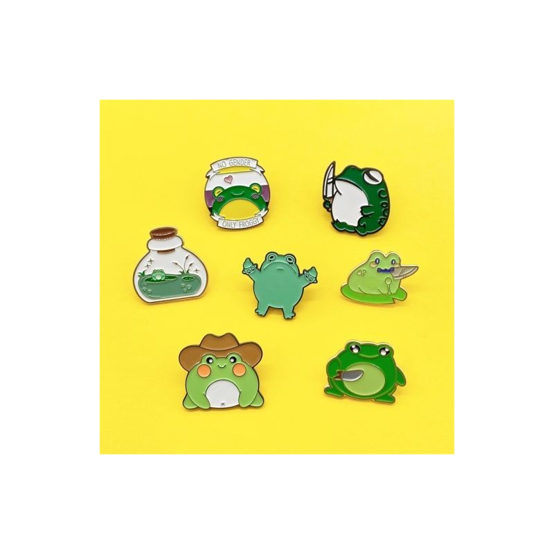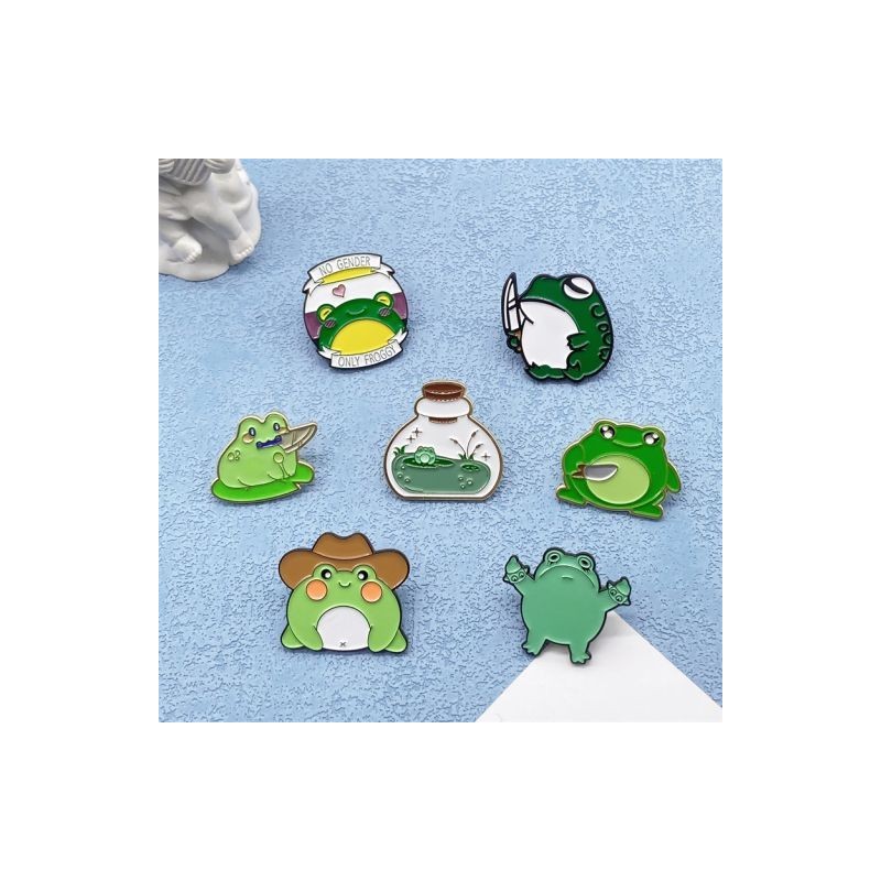 Funny Little Frog Collection Metal Enamel Brooch Cartoon Cute Cowboy Love Frog Small Animal Badge Lapel Pin Jewellery Accessories
