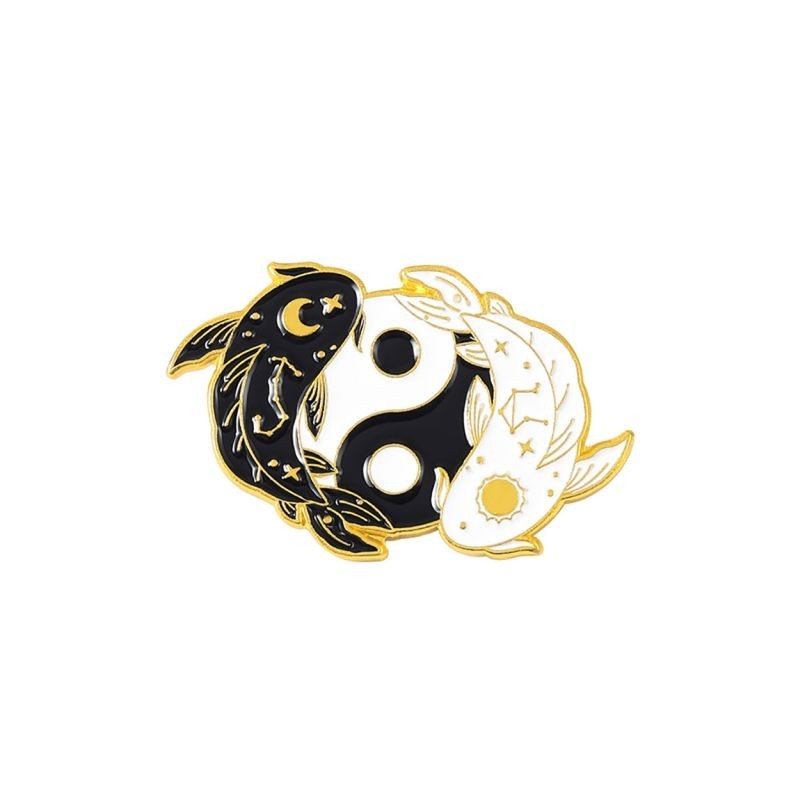 Tai Chi Gossip Black White Yin and Yang Couple Animal Brooch Exquisite Clothing Accessories Backpack Brooch Badge Lapel Pins