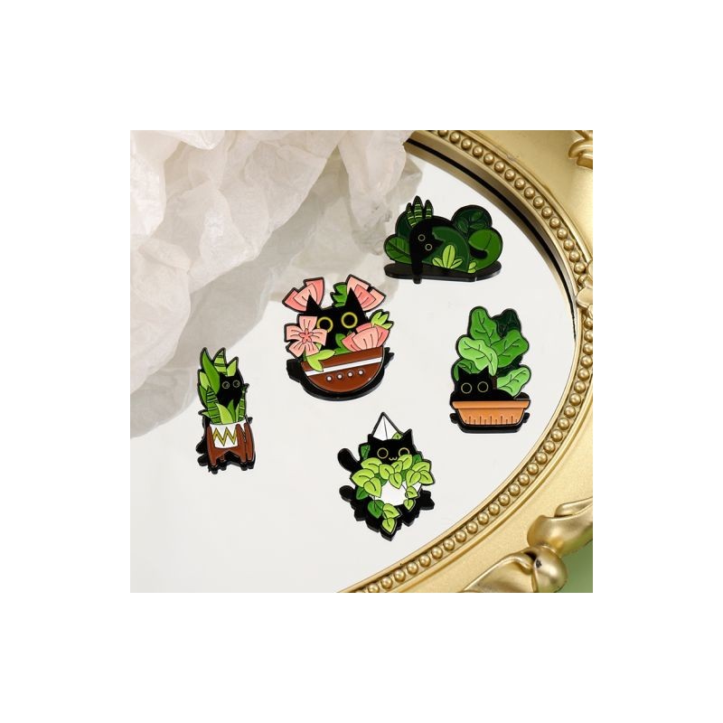 Növényben lévő macskák Zománctűk Egyedi fekete macska cserepes növényi brossok hajtókás jelvények Szórakoztató Állatnövények Ékszer Ajándék gyerekbarátoknak