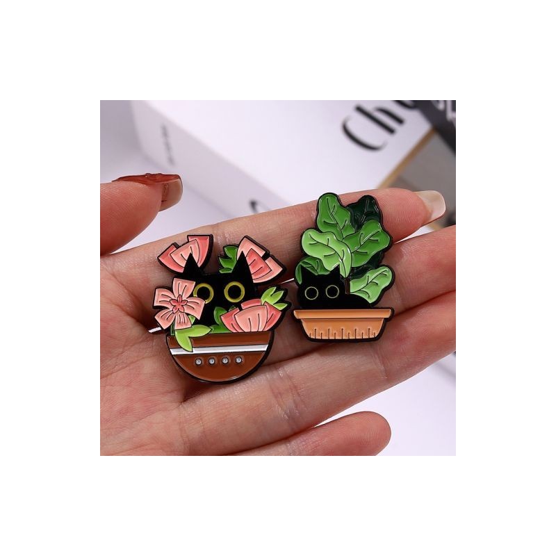 Növényben lévő macskák Zománctűk Egyedi fekete macska cserepes növényi brossok hajtókás jelvények Szórakoztató Állatnövények Ékszer Ajándék gyerekbarátoknak