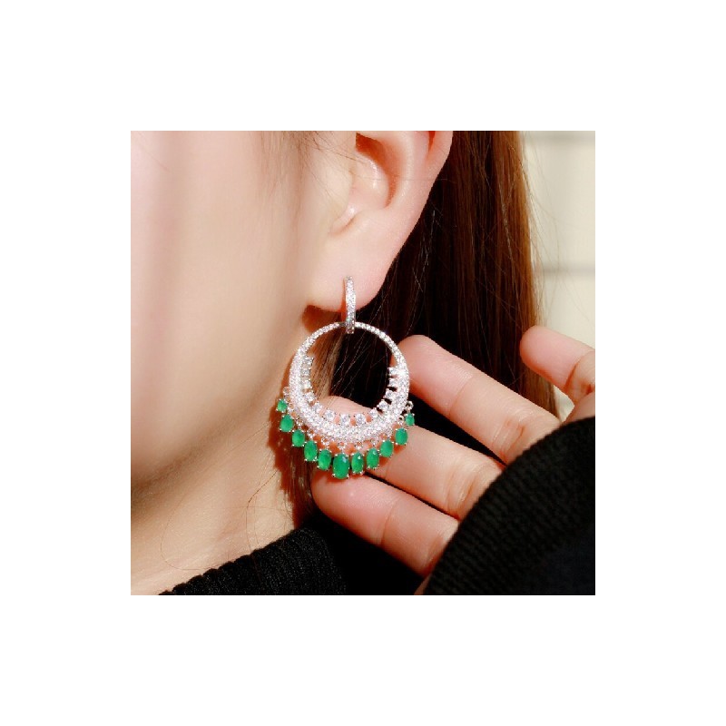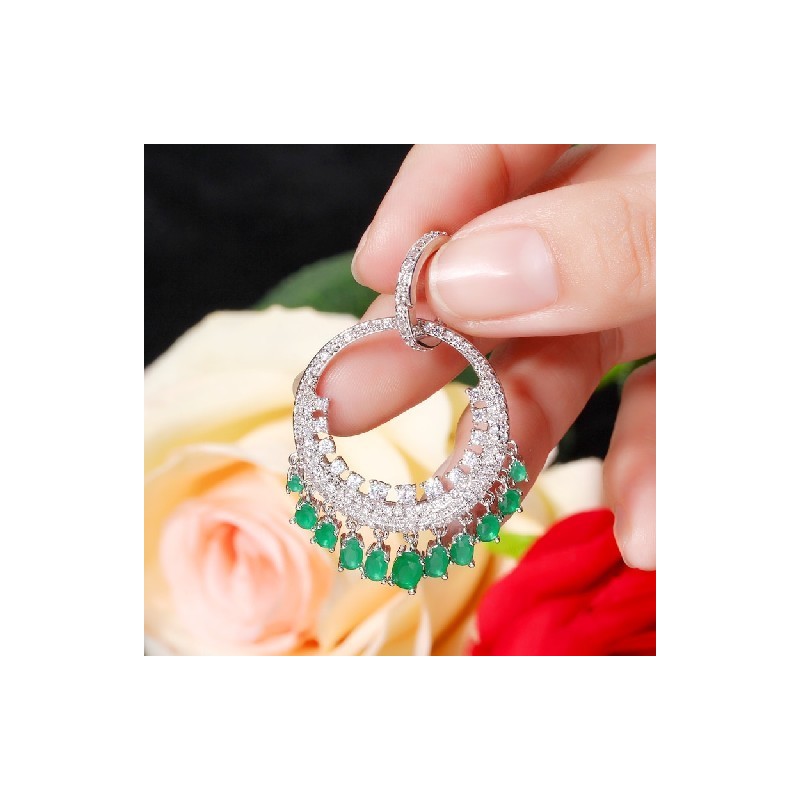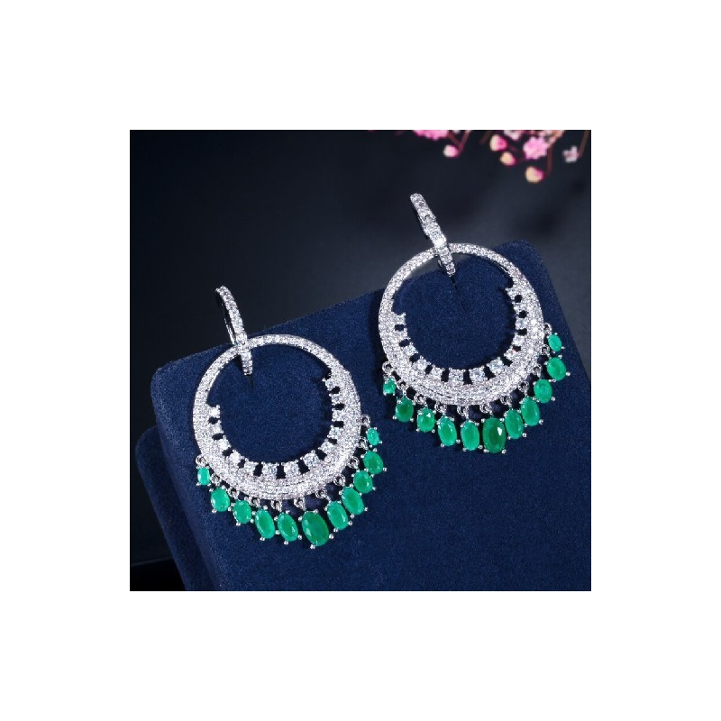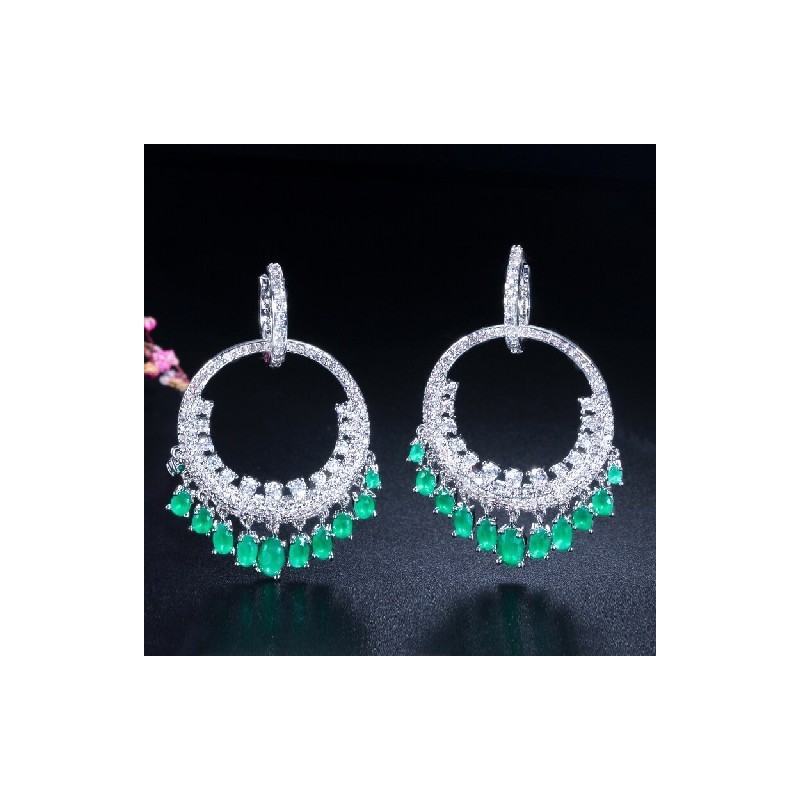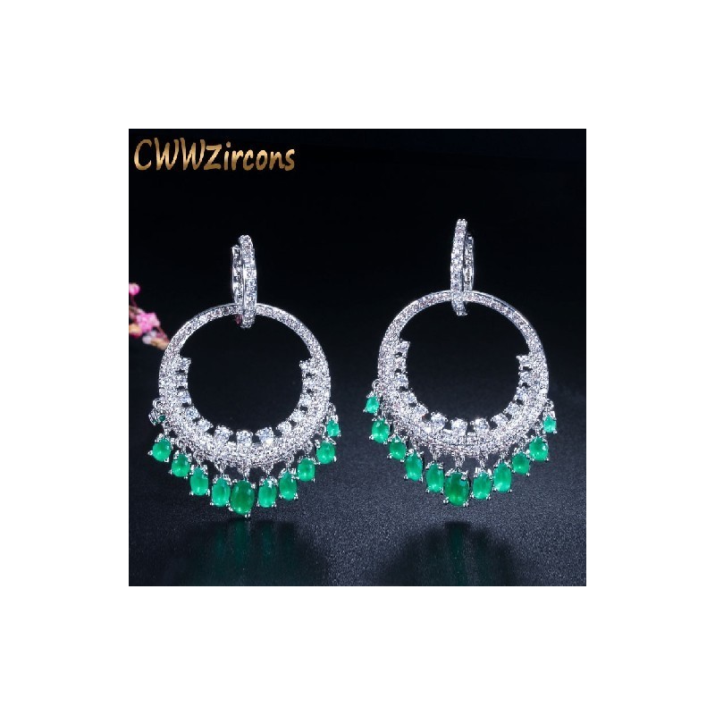 CWWZircons Fashion Big Round Ethnic Dangling Long Hoop Earrings for Women Green Clear CZ Wedding Dress Accessories CZ143