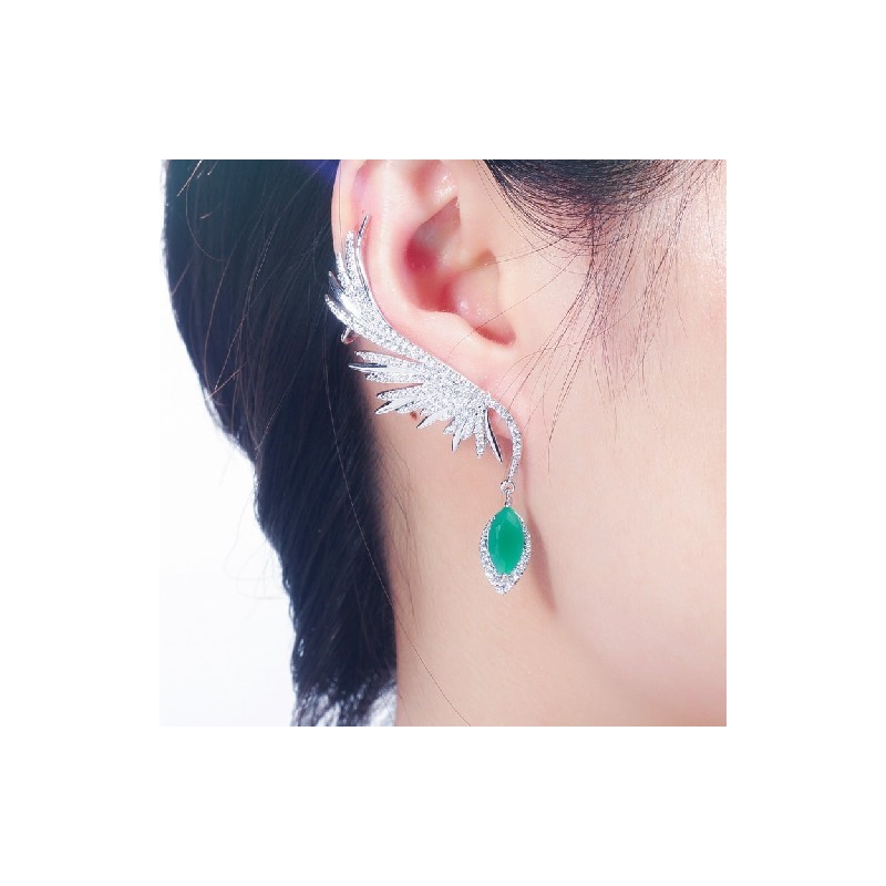 CWWZircons Luxury Full Cubic Zirconia Pave Popular Big Long Drop Feather Wing Ear Cuff Earrings for Women CZ625