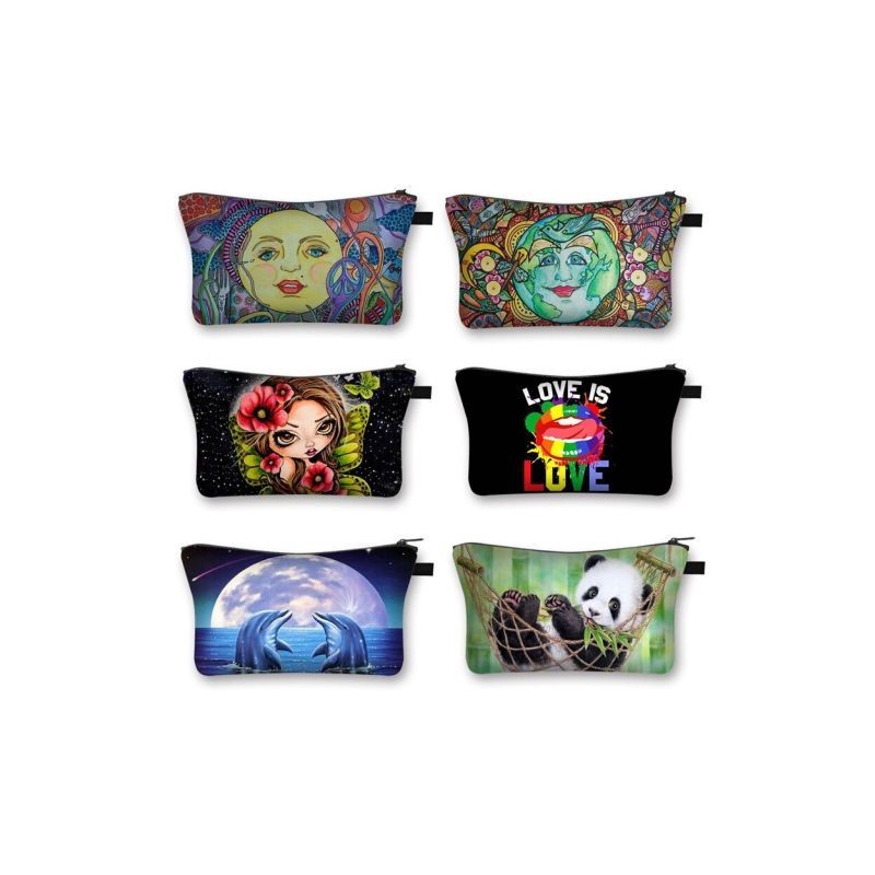 Abstract Cosmetic Bag Waterproof Printing Sun Moon Panda Letter Toiletry Bag for Travel Makeup Brushes Storage Bags Organizer