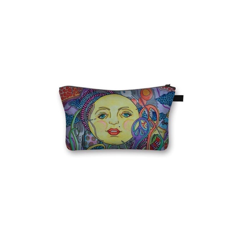Sun Moon Smiley Printed Hand Hold Travel Storage Cosmetic Bag Toiletry Bag