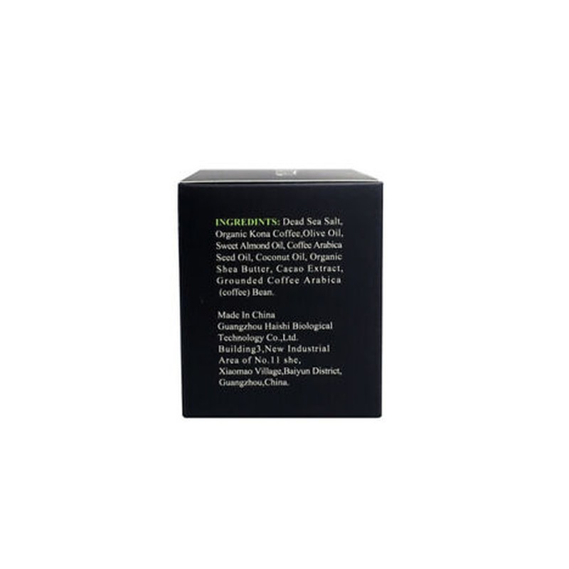 Ingredients: Dead Sea Salt, Organic Coffee Powder, Olive Oil, Sweet Almond Oil, Coffee Arabica Seed Oil, Coconut Oil, Organic Shea Butter, Cocoa Extract, Arabica Beans.