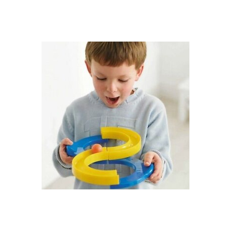 Both hands on both sides of the handle,practice open and close action Familiar with the action after,place the ball on the track to rolling, when the ball rolls to the end of the S-shaped track,change the orbital direction Let the ball continue to move in orbit,try not to drop.