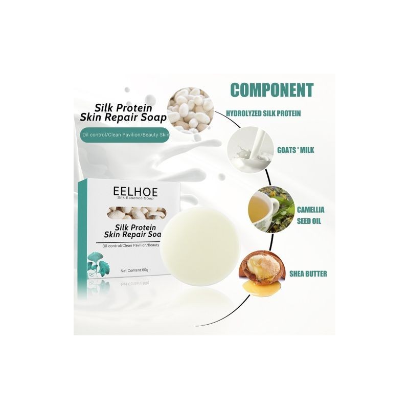 Silk Protein Soap Oil Control Moisturize Face Wash Deep Cleansing Pores Mites Acne Blackheads Remover Soft Tender Skin Handmade Soap for Body Facial Cleanser
