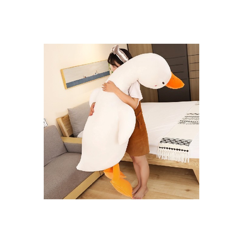 90-140 cm Óriás méretű, puha fekvő kacsa plüss szőnyeg Szép hatalmas plüss kacsa babák kitömött állatpárna alvó hátpárna babának