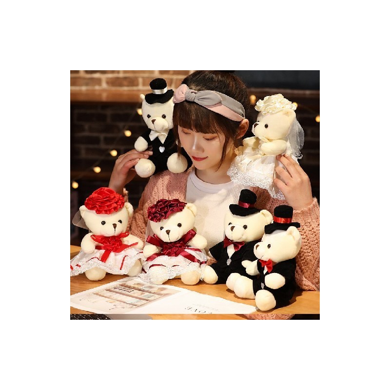 2pcs/lot Cute Couple Wedding Bears Plush Toys Kawaii Sweetheart Teddy Bear Dolls Stuffed Soft Toys Lovers Girls Birthday Gifts