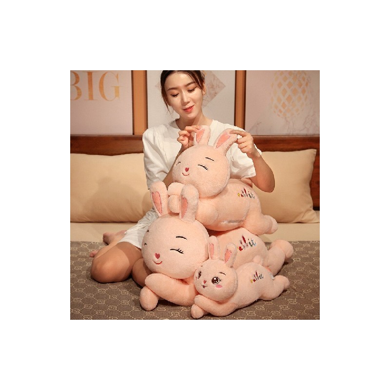 45/60/80CM Lovely Lying Rabbit Plush Toys Cute Smiling Face Bunny Pillow Cushion Stuffed Soft Animal Dolls for Girls Xmas Gifts