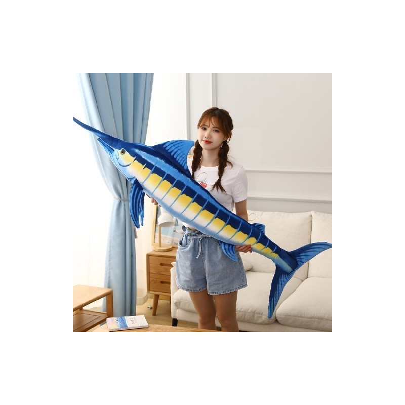 60-140cm Simulation Blue Marlin Plush Toys Stuffed Soft Creative Pillow Fish Dolls Funny Birthday Gift for Children Boys