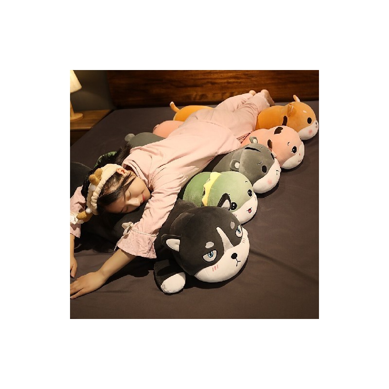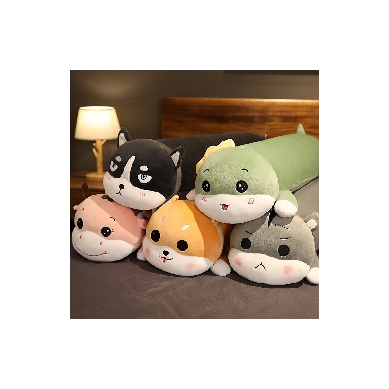 80/100cm Giant Cartoon Animals Plush Sleep Pillow Stuffed Dinosaur Husky Dog Shiba Inu Hamster Cattle Plush Toys for Kids Baby