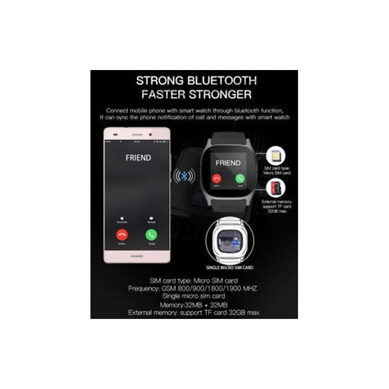 One T8 Bluetooth Smart Watch Support SIM and TFcard Camera For Android iPhone