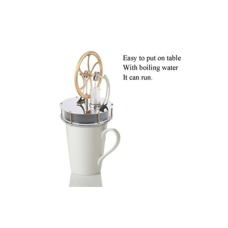This low temperature stirling engine,runs on a hot cup of water, wait a couple of seconds, gently flip the wheel,then it will run itself. It also can be used for teaching purpose.