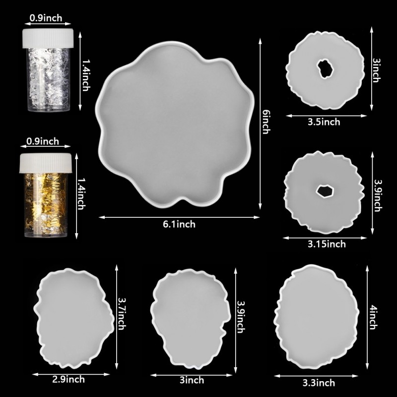 Features:âś” What you Get ‘: 6 Pack coaster silicone molds and Totally 2 bottle of Gold Foil Flakes in gold and silver Color.