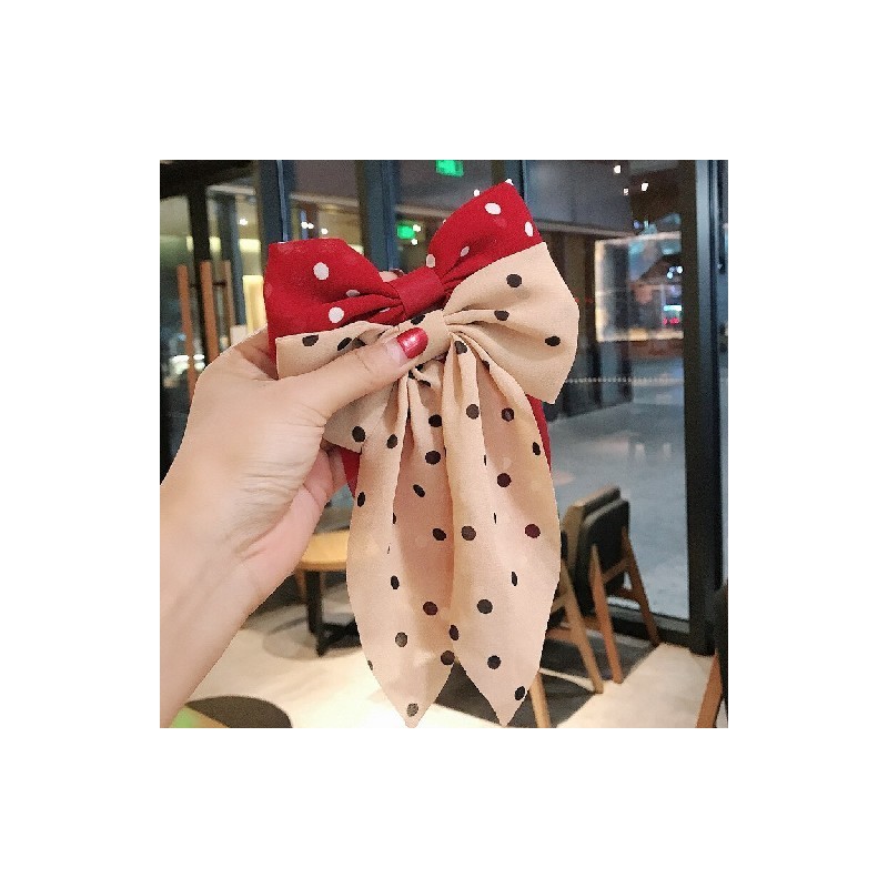 Sweet Bow Knotted Hairpin Chiffon Polka Dot Print Barrettes Big Bow Hair Clip for Women Girl Ponytail ornament Hair Accessories