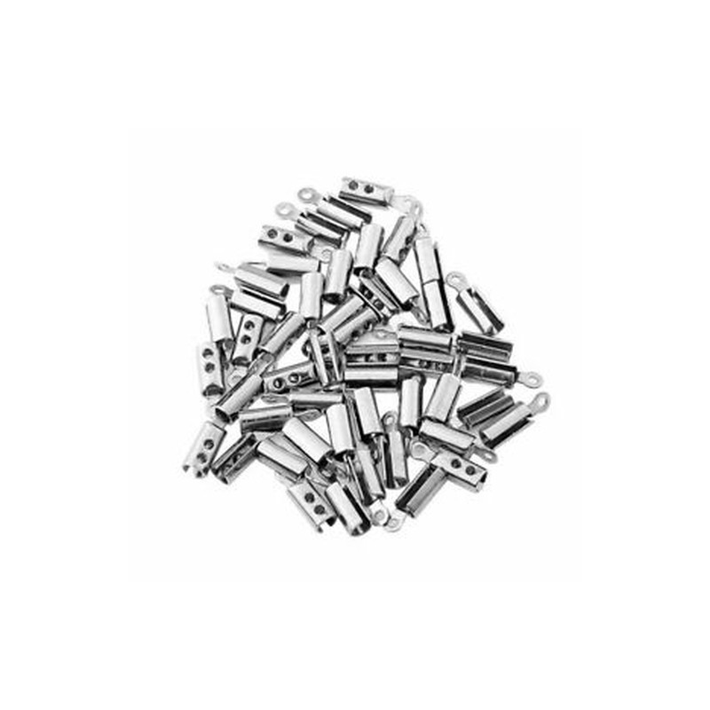 Stainless Steel Silver Necklace Crimp Cord Ends Jewellery Findings 10x3mm-50P I7C3