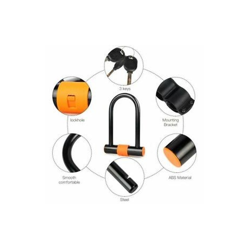 6X(HIGH-TECH LOCK CORE - This bike U lock equipped with high-tech solid copper blade lock core, which is wear-resistant and not easily get rusty; Strong blade structure will ensure the high safety; Advanced lock core design, not easy to open by someone else. So this U-shaped lock has a strong performance on safety and durability.